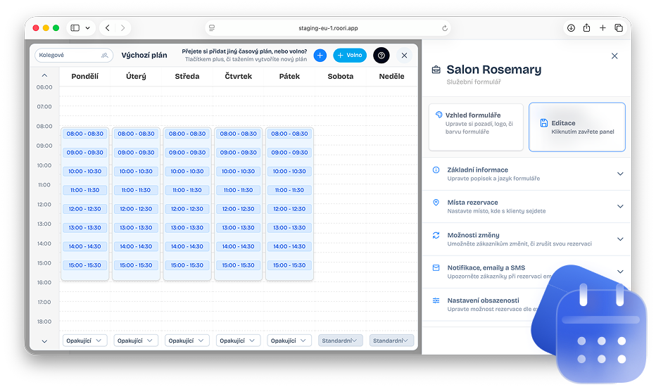 spravujete rovnou v kalendáři bez nutnosti další aplikace.